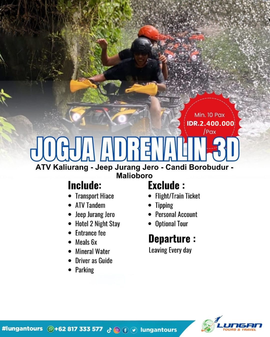 ATV Kaliurang - Jeep Jurang Jero - Candi Borobudur - Malioboro